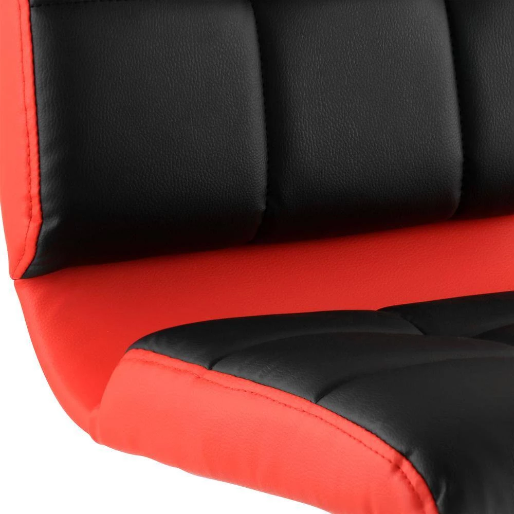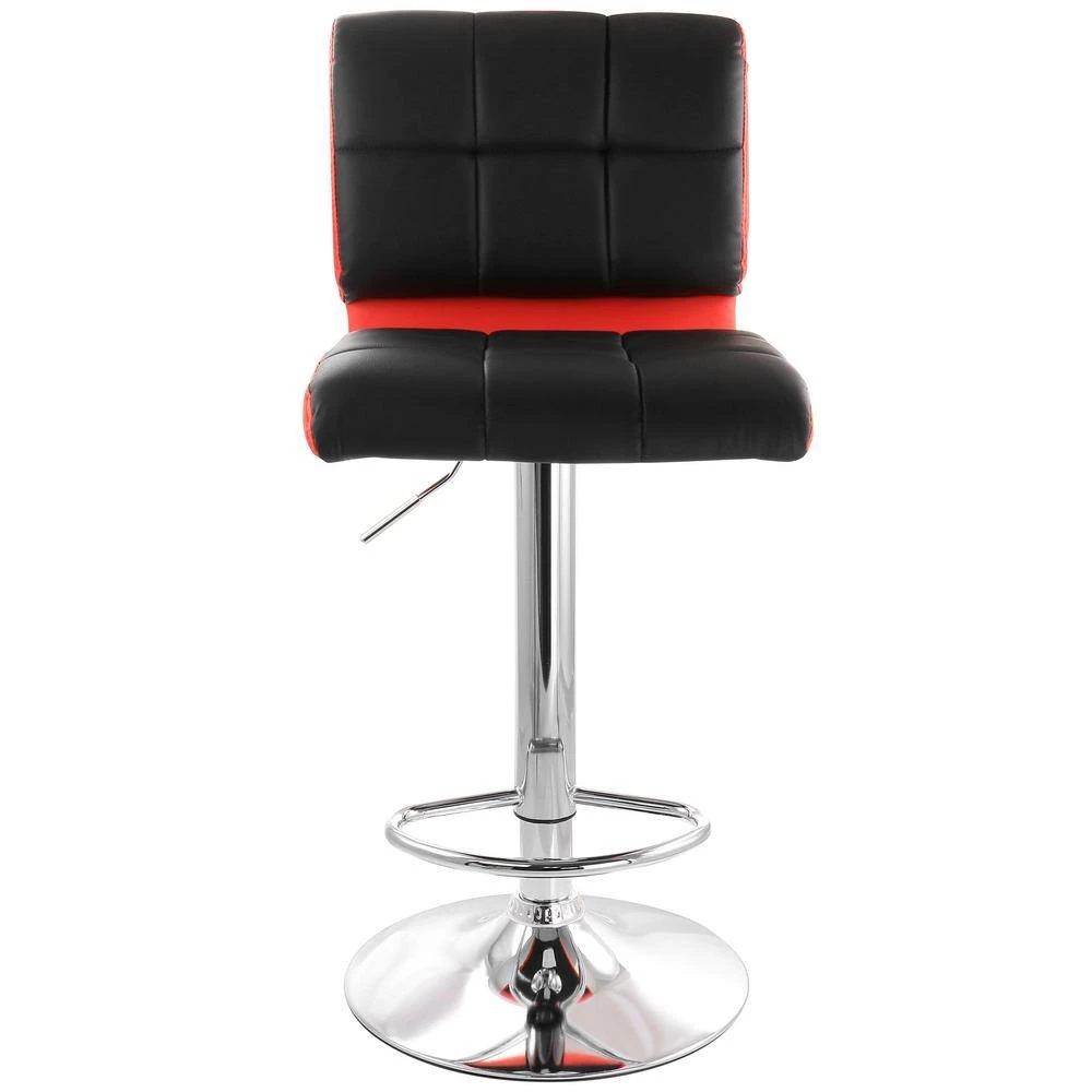 Add a stylish touch to your home bar or kitchen counters with the Elama 2 Piece Tufted Faux Leather Adjustable Bar Stool Set. Constructed with quality faux leather and sturdy metal, this set of stools is durable and long lasting. Designed with a classic diner style feel, this stool is made with 2 toned faux leather fabric in a square tufted finish. Chrome base swivels and is adjustable, making this set easy to move around in and customize to your needs. Foot rest provides added support, and the arm less design saves space. Add some color and fun to your home with this set of stools.
