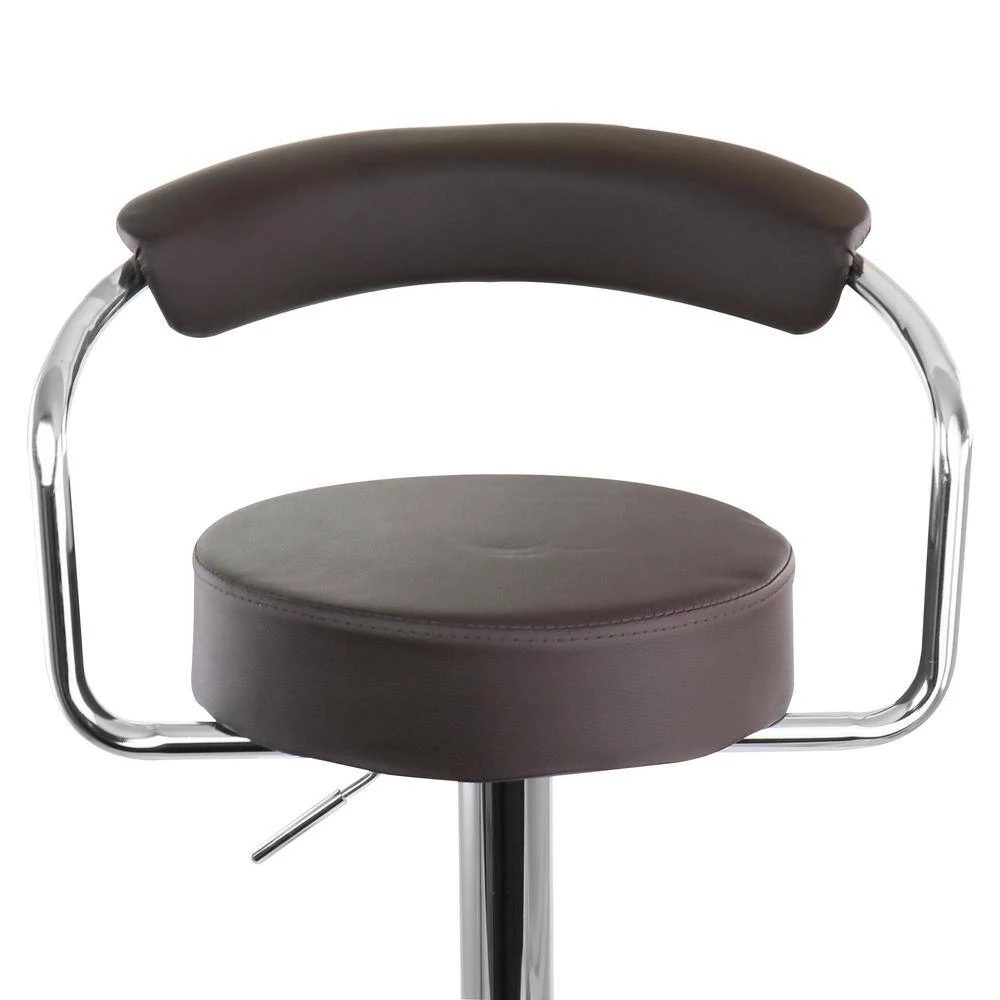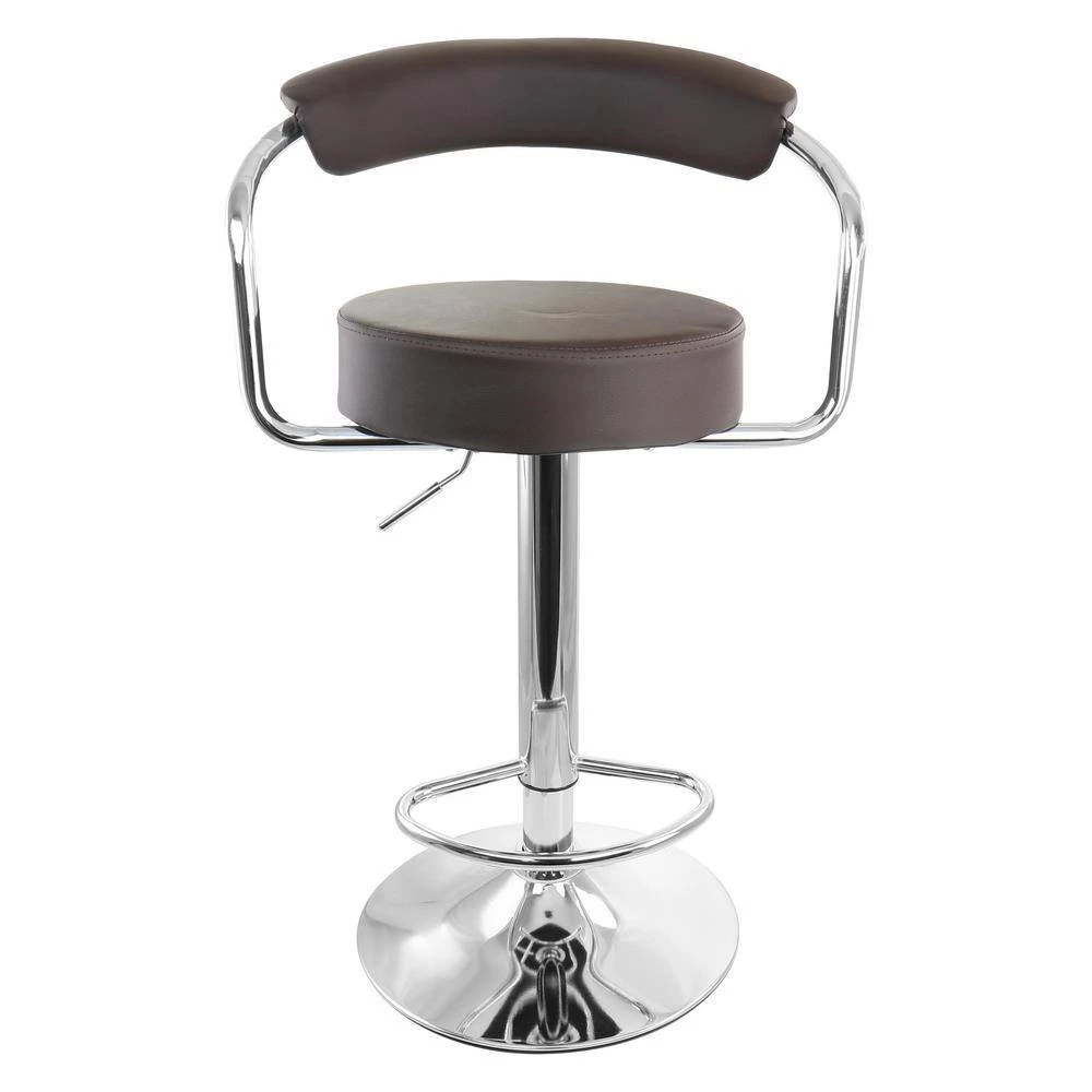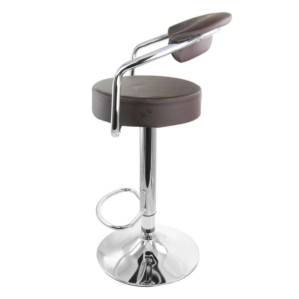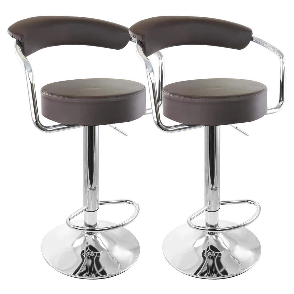 Add a stylish touch to your home bar or kitchen counters with the Elama 2 Piece Faux Leather Retro Adjustable Bar Stool in Brown with Chrome Handles and Base. This set of chairs is uniquely retro shaped for a fun addition to any room. Swivel base is perfect for movability and adjustable height allows you to customize these stools to whatever height is most comfortable and convenient for your home counters. These adjustable chairs are crafted from quality metal and faux leather for a strong and long lasting design.