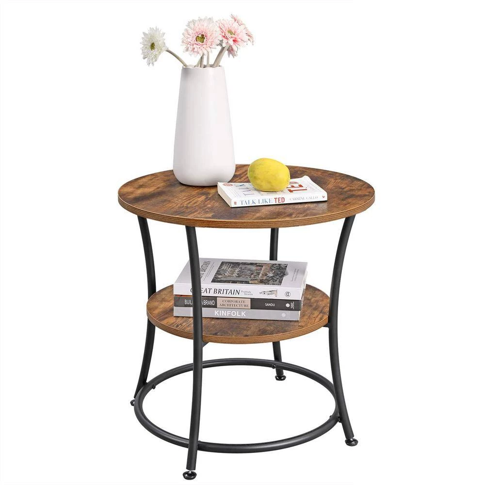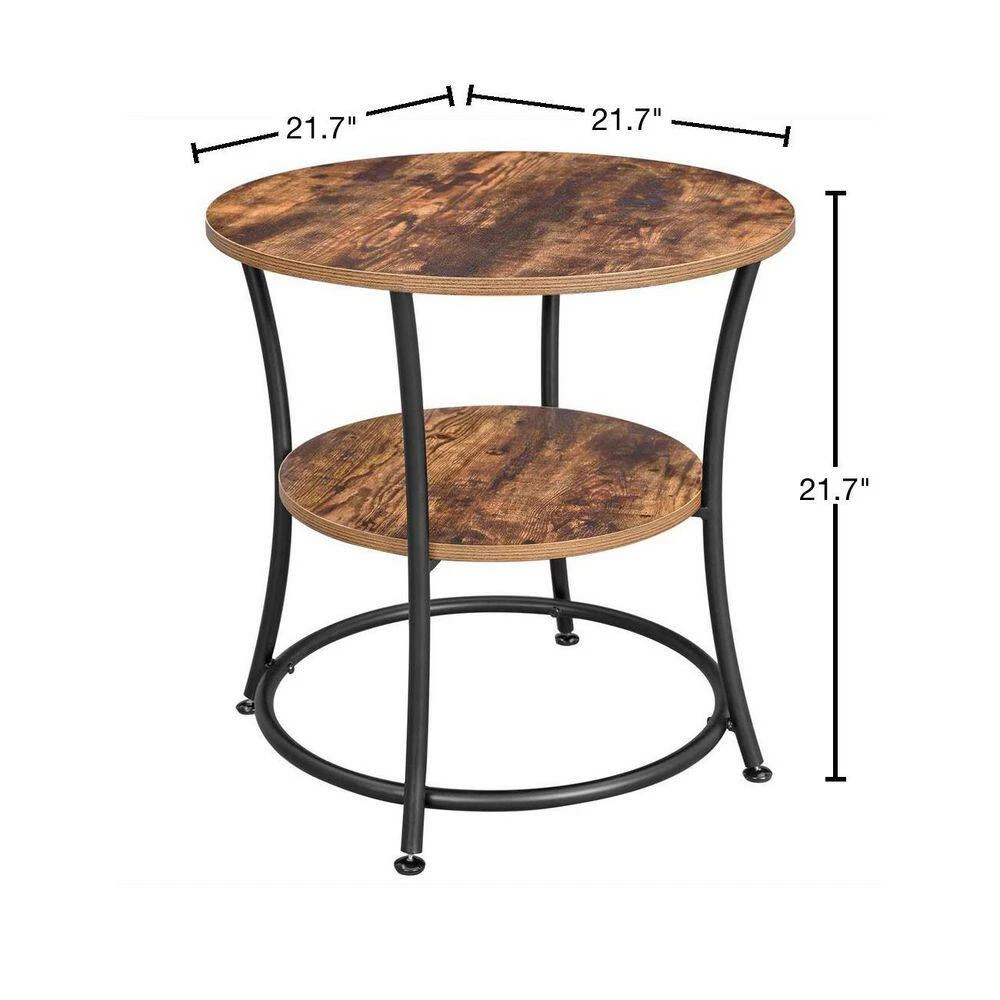 - 21.7 in. dia. side table has stable steel legs, which are additionally reinforced by round tubes, the table does not yield whether you place a 66 lb. bronze statue on the top shelf, nor when you use it for many years