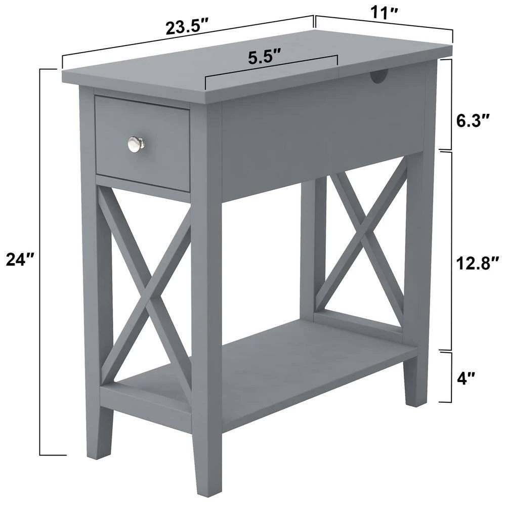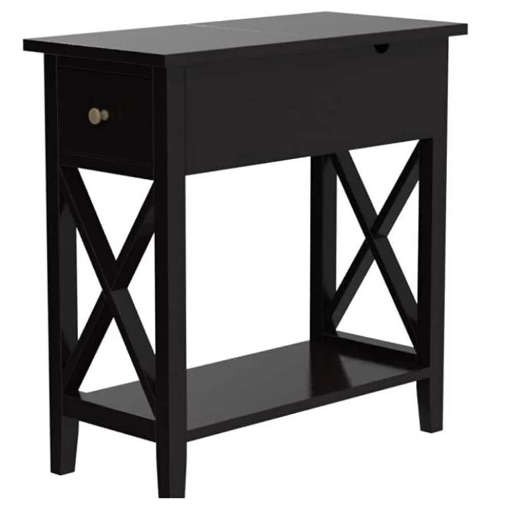 The silm side table with flip top open design and X shaped profile, Classic color matching is easy to integrate with your furniture. Bring different visual experience for your living room.This long top end table will match perfectly with others.