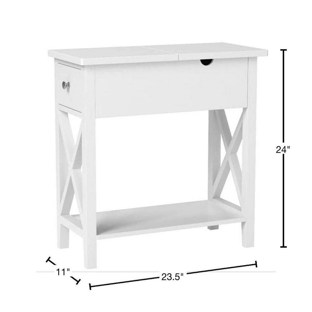 The silm side table with flip top open design and X shaped profile, Classic color matching is easy to integrate with your furniture. Bring different visual experience for your living room.This long top end table will match perfectly with others.