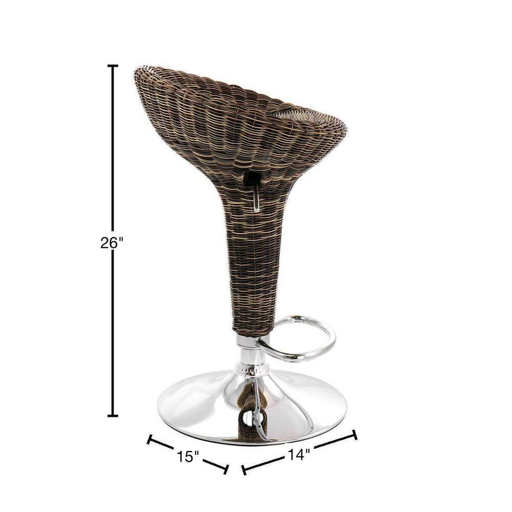 Add a stylish touch to your home bar or kitchen counters with the Elama 2-piece Adjustable Rattan Bar Stools. This set of stools is crafted with quality metal and durable woven plastic for long lasting use. Bring a fun and casual look into your home decor with the wicker detailing. Adjustable swivel base features a foot rest for customizable height and added support. Backless and arm-less chair design is casual, comfortable and space saving. Use these stools at indoor.or outdoor.bars.