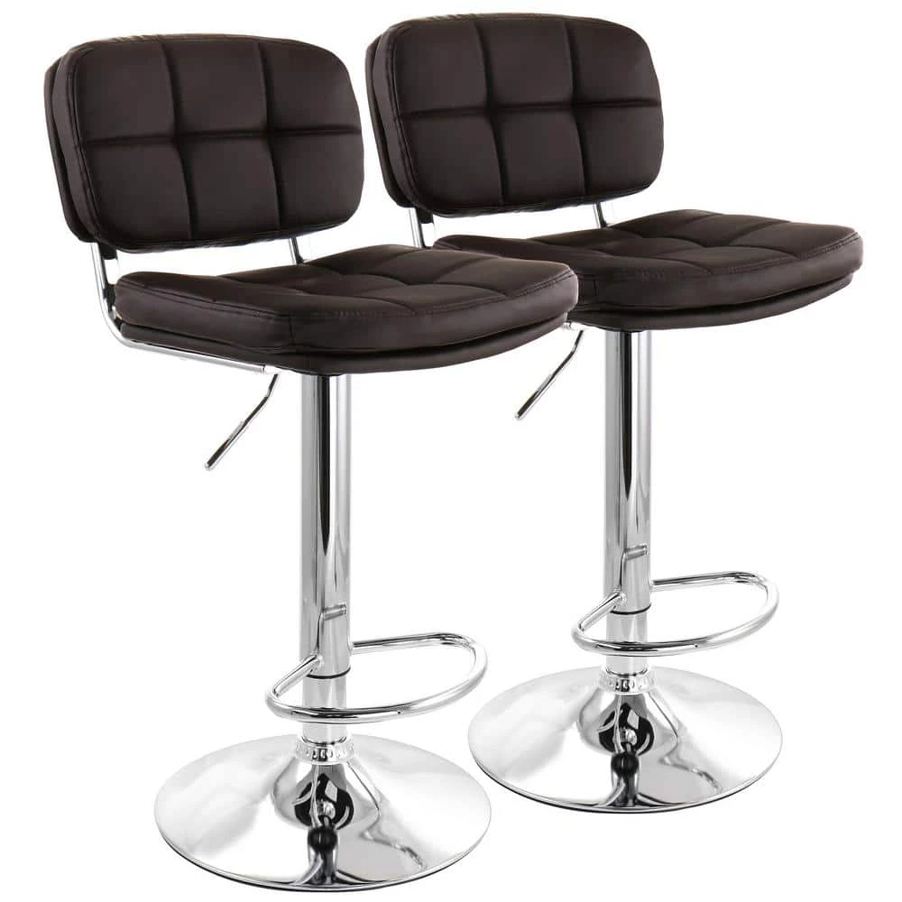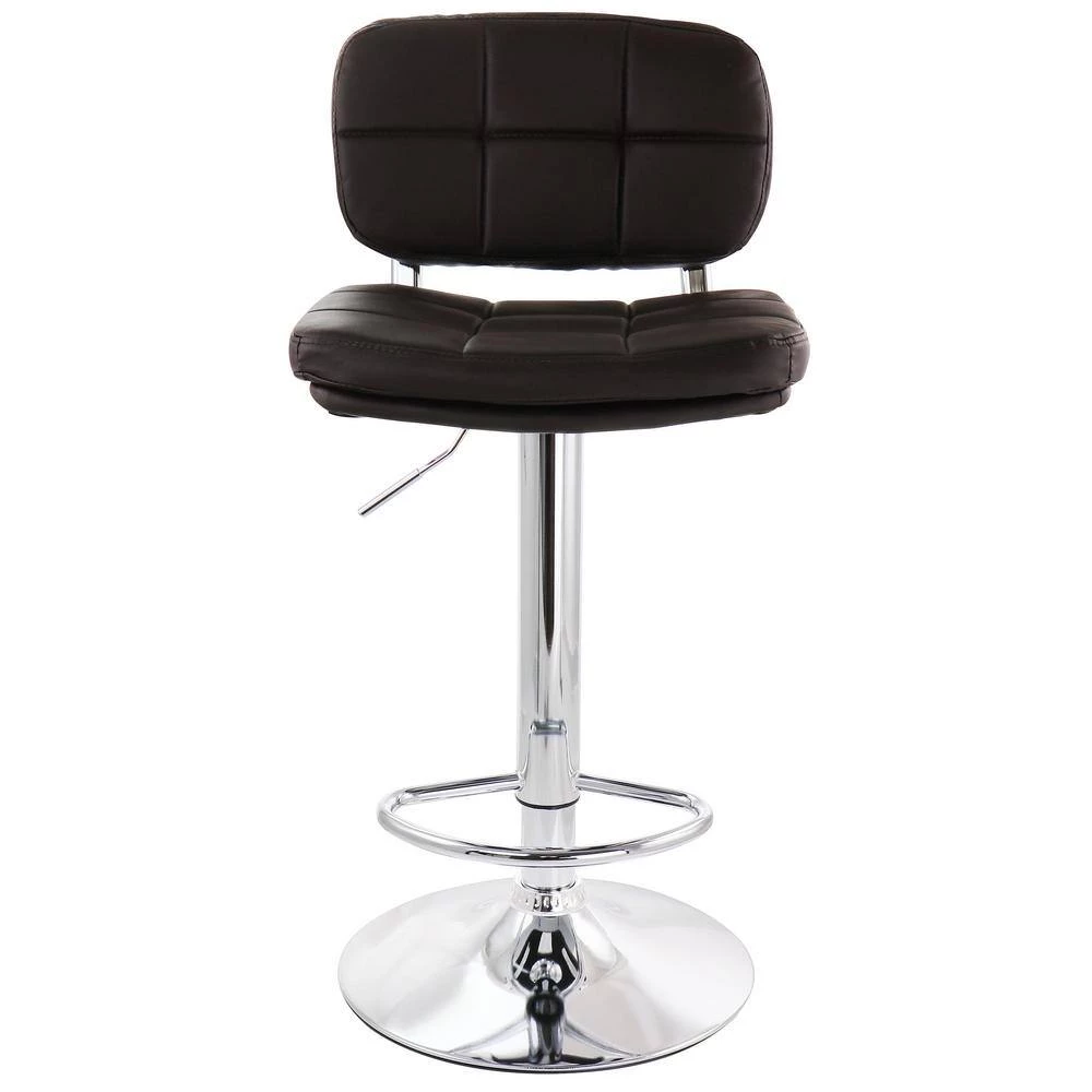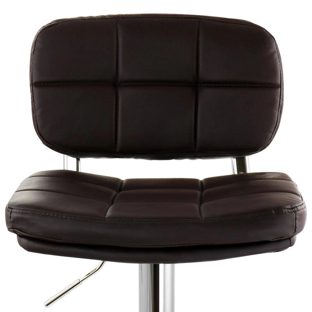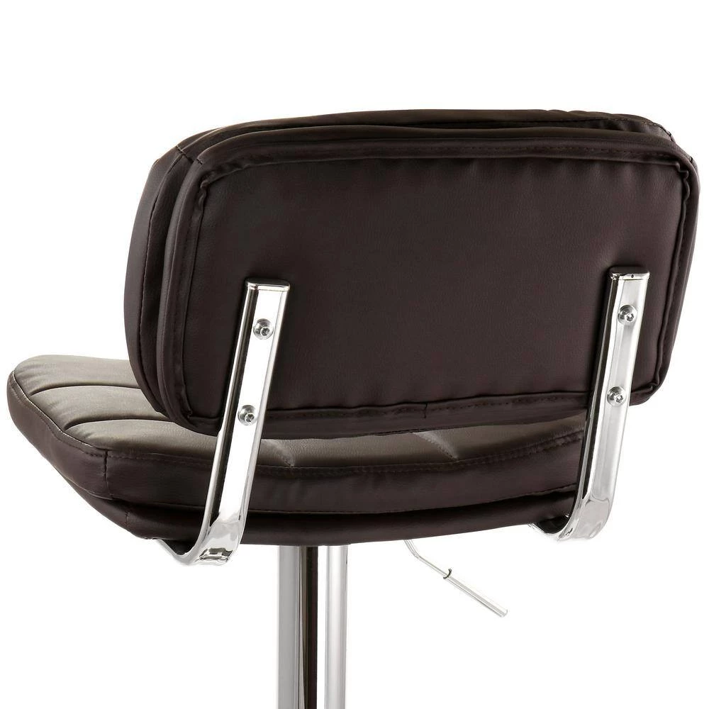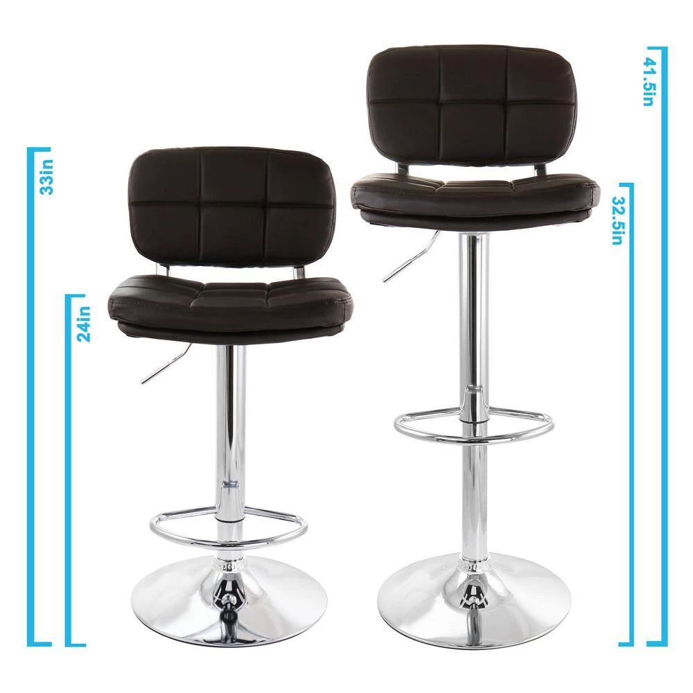 Add a stylish touch to your home bar or kitchen counters with the Elama 2-Piece Adjustable Faux Leather Bar Stool in Brown with Chrome Base. Made of quality cushioned faux leather and sturdy metal, this set of stools is made to last. Adjustable swivel base allows you to customize height to wherever you need these stools to fit. Foot rest provides extra support while seated high, and the arm-less design lets you easily fit stools side by side while saving space.