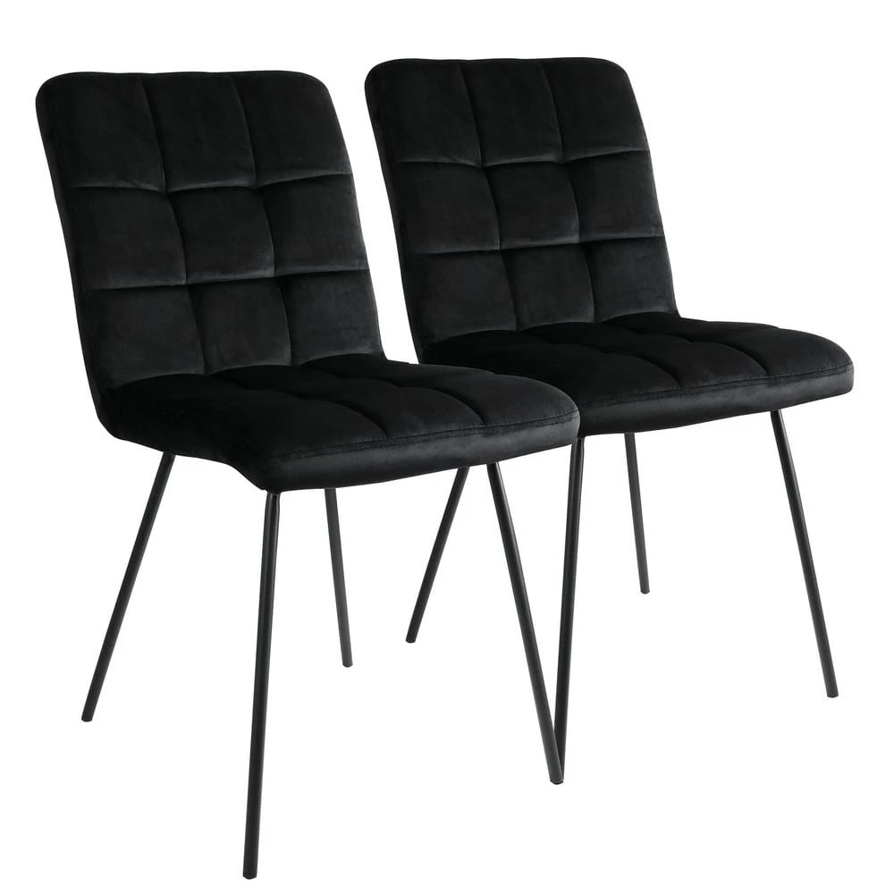 Add a touch of elegance to your living room.or work space with the Elama 2-piece Tufted Chair in Black with Metal Legs. This set of chairs is crafted with a velvet square stitch designed upper and sturdy metal legs. This set of 2 accent chairs is perfect for relaxing on in front of the TV or getting some work done in style in your home office. Designed with durability and easy assembly in mind.