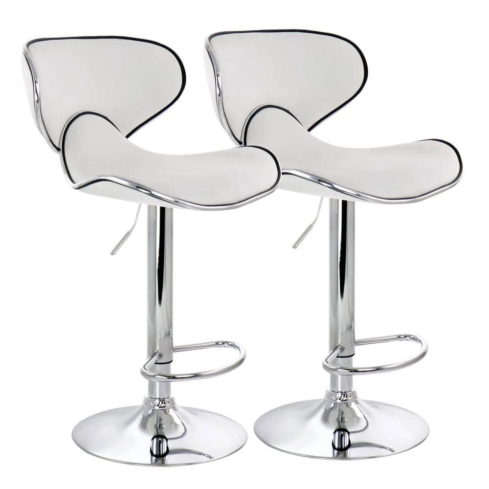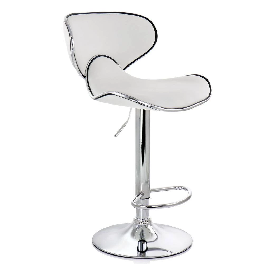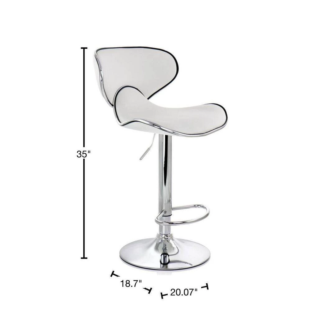 Add a stylish touch to your home bar or kitchen counters with the Elama 2 Piece Faux Leather Adjustable Bar Stool in White with Chrome Base. This chair is uniquely shaped for a comfortable fit while you’re seated. The Elama adjustable chair is also crafted from quality and sturdy metal for a strong and long-lasting design.