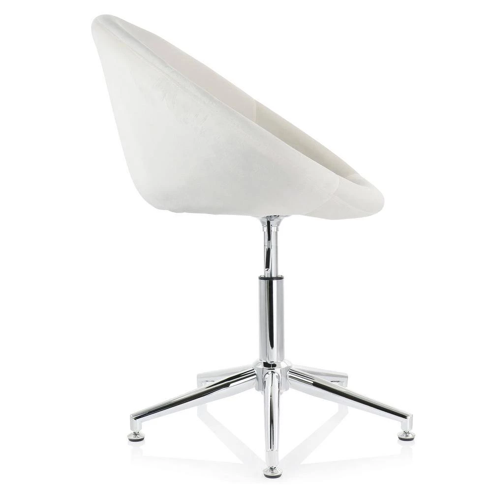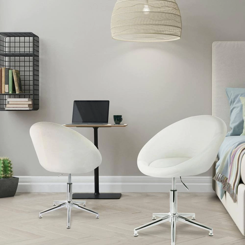 Add a stylish touch to your home with this rounded back velvet accent chair by Elama. The soft velvet cushioned seat on this adjustable chair is designed with a slight lean for added comfort. Swivel base allows you to move freely without hassle and the adjustment lever on the right side lets you pick a custom height so you can move from lounging to working at a desk with ease. Rubber bottom feet keep this chair in place while the durable metal and quality velvet construction is meant to last the test of time.
