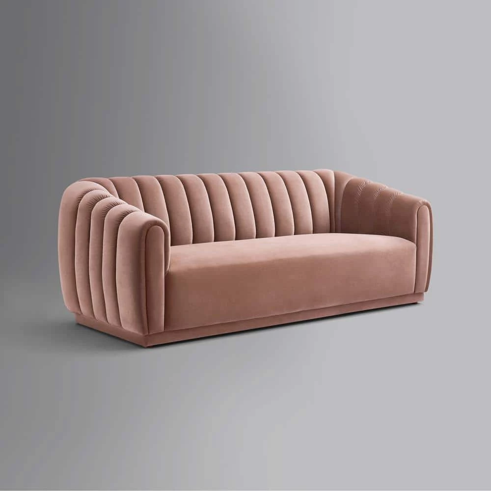 Bring some bright color and sophistication into your living space and transform your home into loft you always wanted. This modern velvet upholstered sofa adds depth to your modern living room, lounge room or office. Channel tufted back, rolled arms and clean-lined silhouette swirls together for an organically deigned piece that provides both decor appeal and premium comfort.