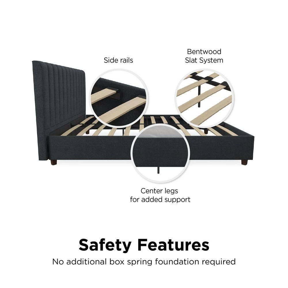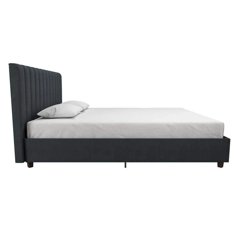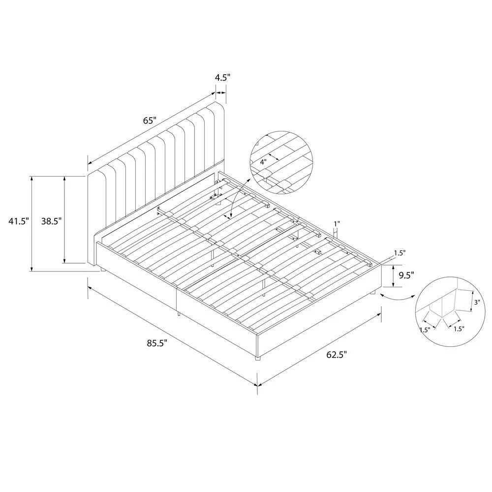 - Designed with a lavish modern style in premium linen upholstery. Ribbed tufted headboard and oak colored legs