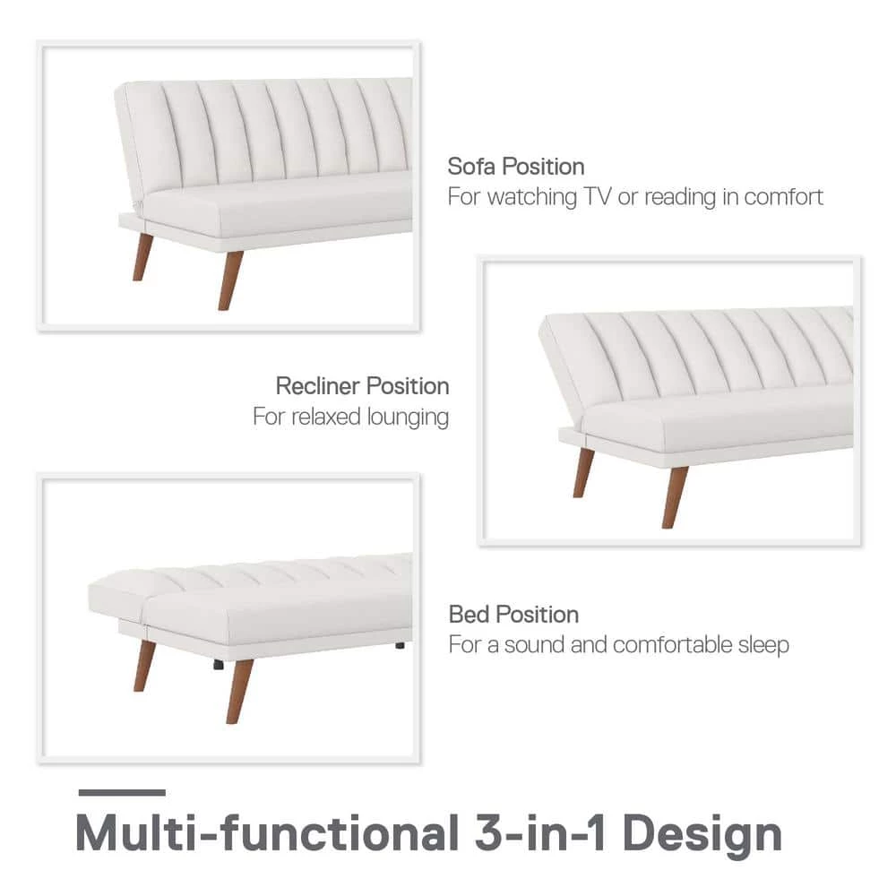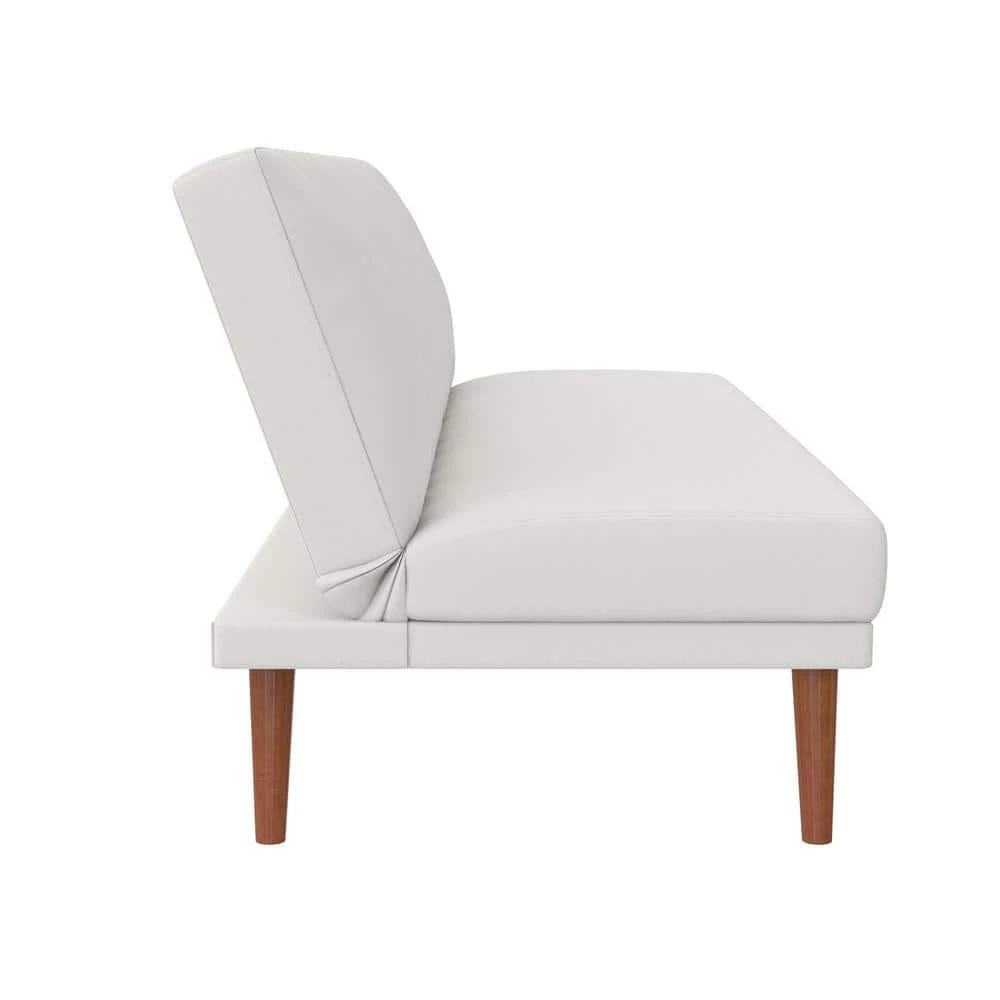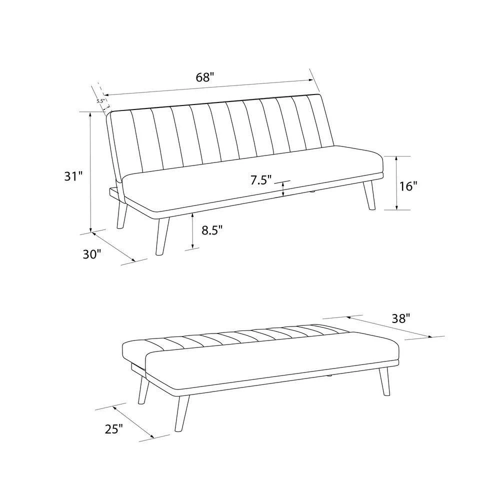 How can we take the classic design that you’ve grown to love and make it even better. Quite easily frankly. The Brittany collection from Novogratz is welcoming a new member to its elite style club and we’d like to give you a long-awaited introduction. The Novogratz Brittany Armless Futon melds distinctive ribbed tufting along its cushioned back with a slim and free-flowing profile that lets you position it into any small living room or home office area. Cheers to that. It incorporates strength and stability in one fell swoop with a robust wood frame and slanted wood grain finished legs to provide ultimate support. With just a push of the backrest and minimal effort, you can turn your couch into a lounger or sofa sleeper bed for holiday weekend guests. Foldable support legs on the back give the bed added reinforcement and can be zippered up and hidden when not in use. With polyester fiber and foam filled seating, you can also expect a sag-free sitting experience. Upholstered in faux leather upholstery, the futon comes in a variety of mod inspired colors.