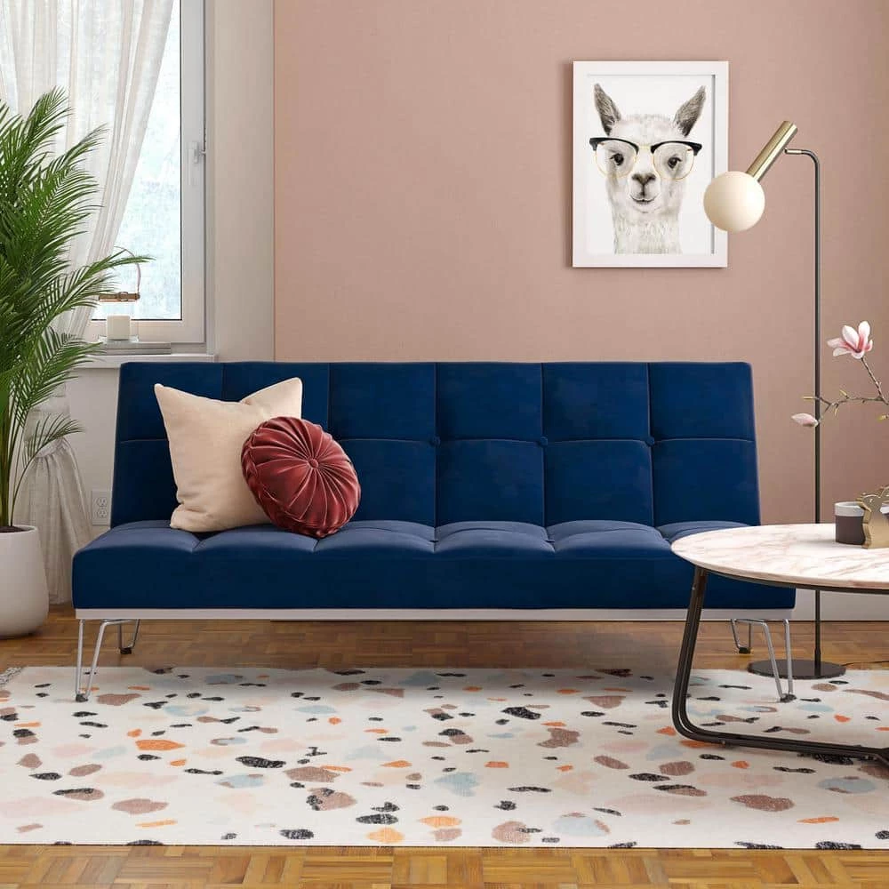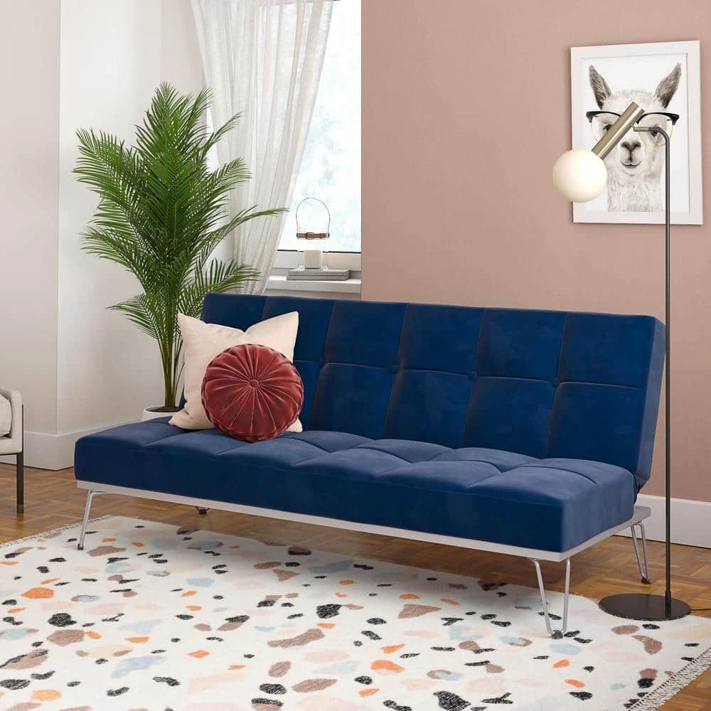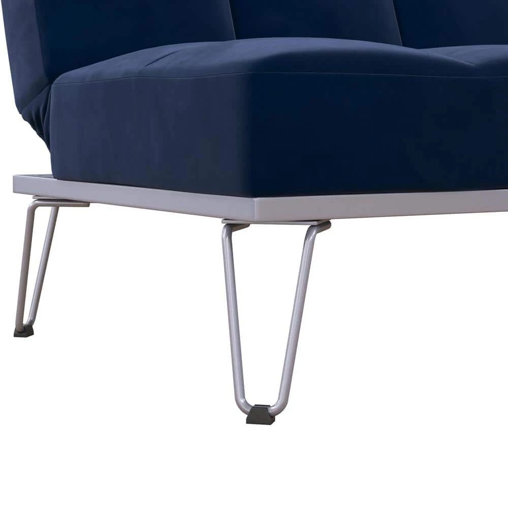 Modern in design, the Novogratz Elle Futon is the simple yet eye-catching addition you are looking for to complete your home decor. Perfect for your living room, home office or guest bedroom, the Elle is upholstered in soft velvet with square button tufted detailing on the backrest and the seat. What’s more, it sits of solid and trendy metal legs! Multi-functional and practical, the Novogratz Elle Futon is built with a versatile design that easily converts between three positions. With an easy push or pull, you can choose between a sitting, lounging or sleeping position; making it the ideal piece to add extra sleeping space for when you need to host friends or family overnight. The frame is built in sturdy wood and strong metal so you know it will stay with you for years to come. Available in multiple stylish colors, the Novogratz Elle Futon is exactly what you are looking for!