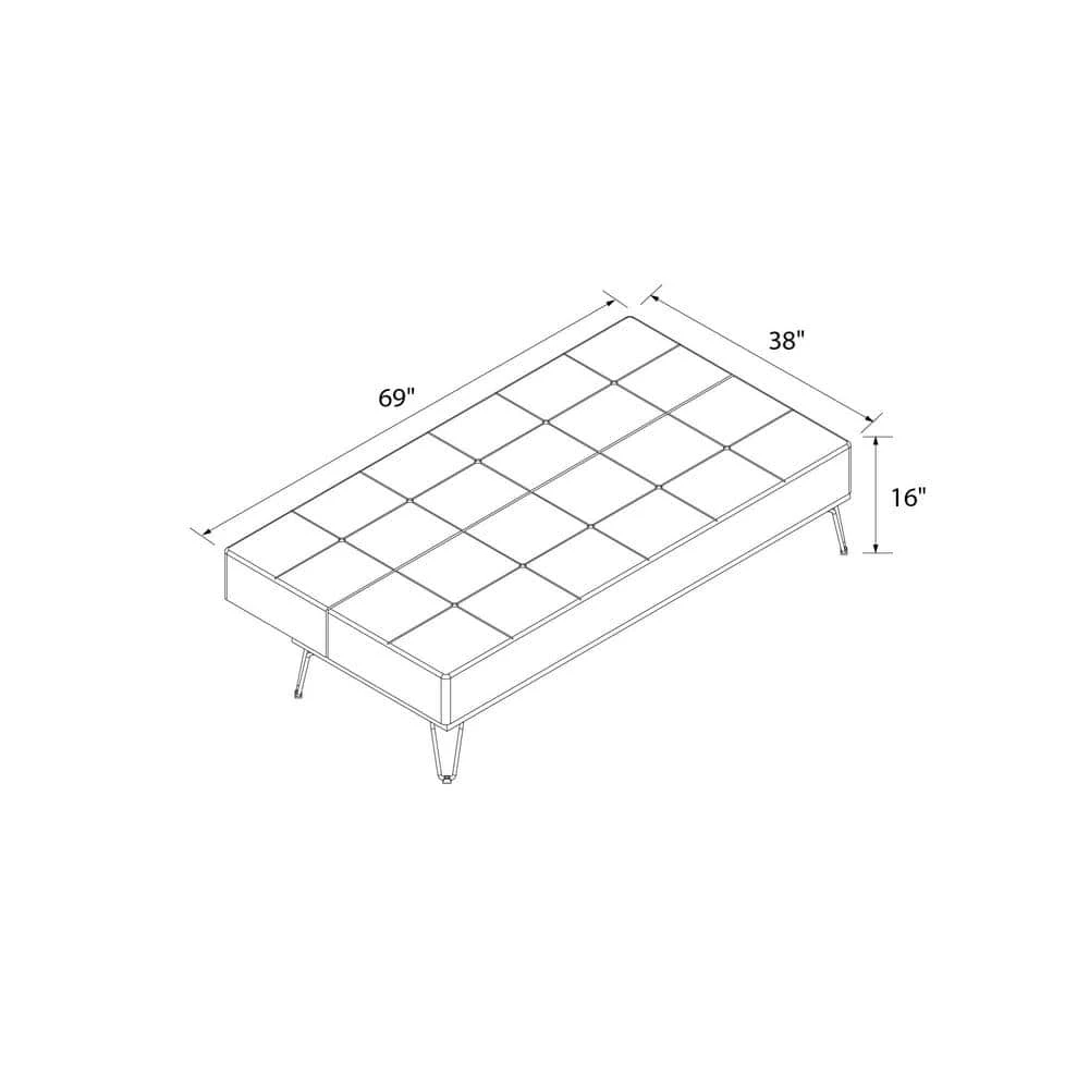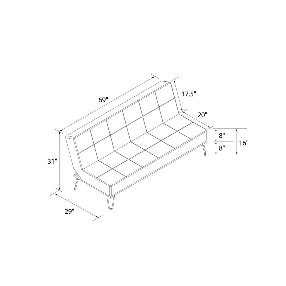 - Product dimensions : Sofa – 69″L x 29″W x 31″H. Bed – 69″L x 38″W x 16″H.
