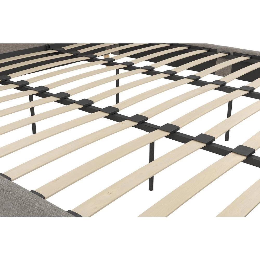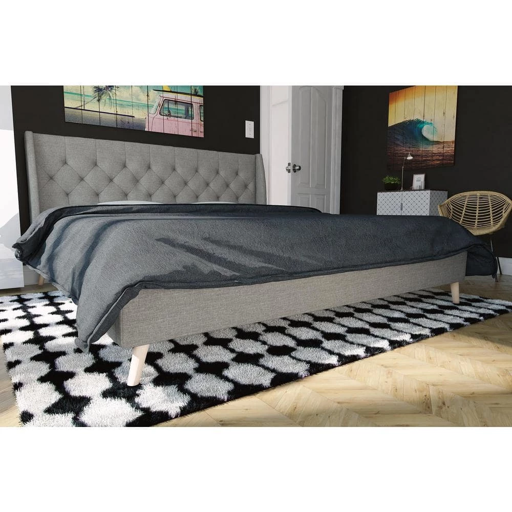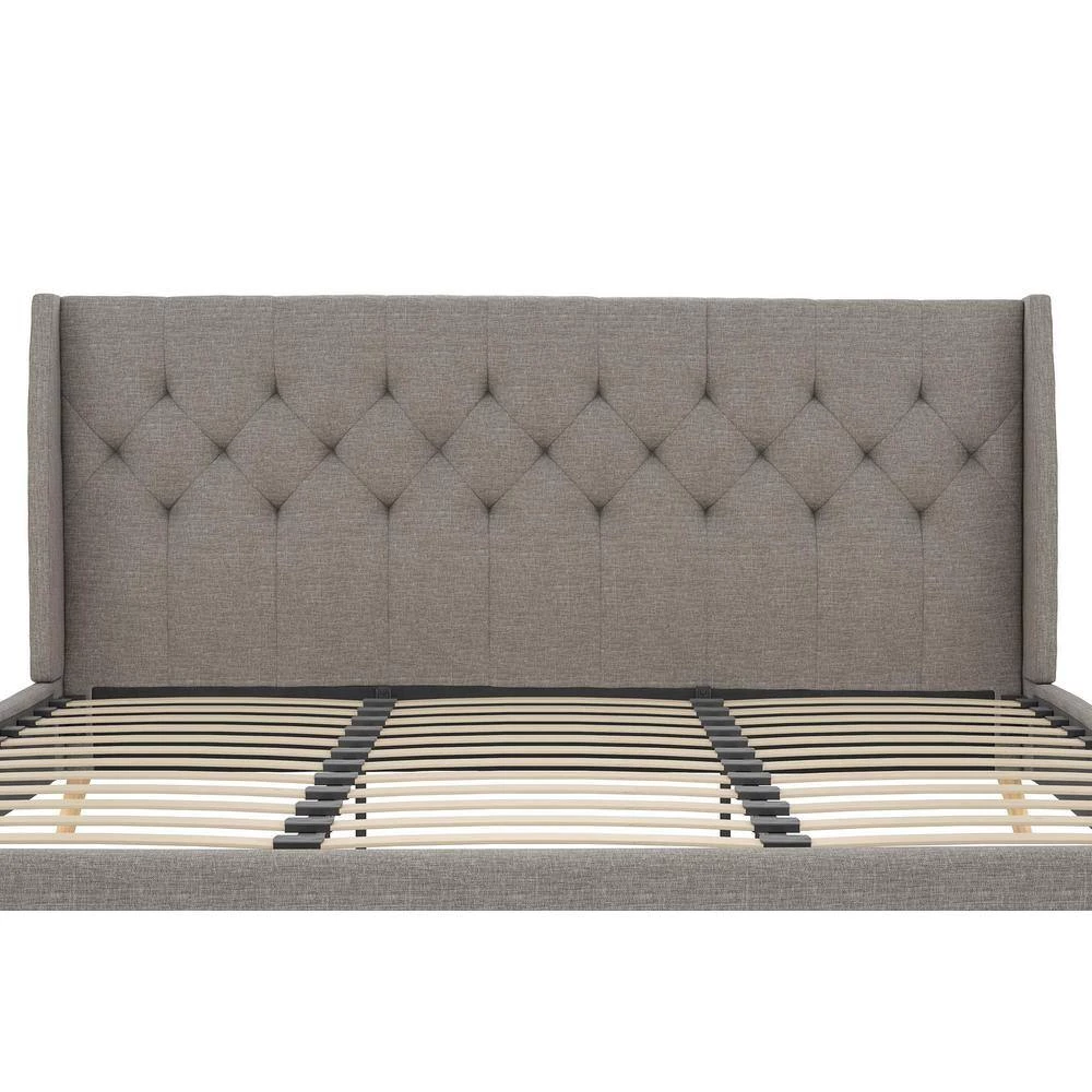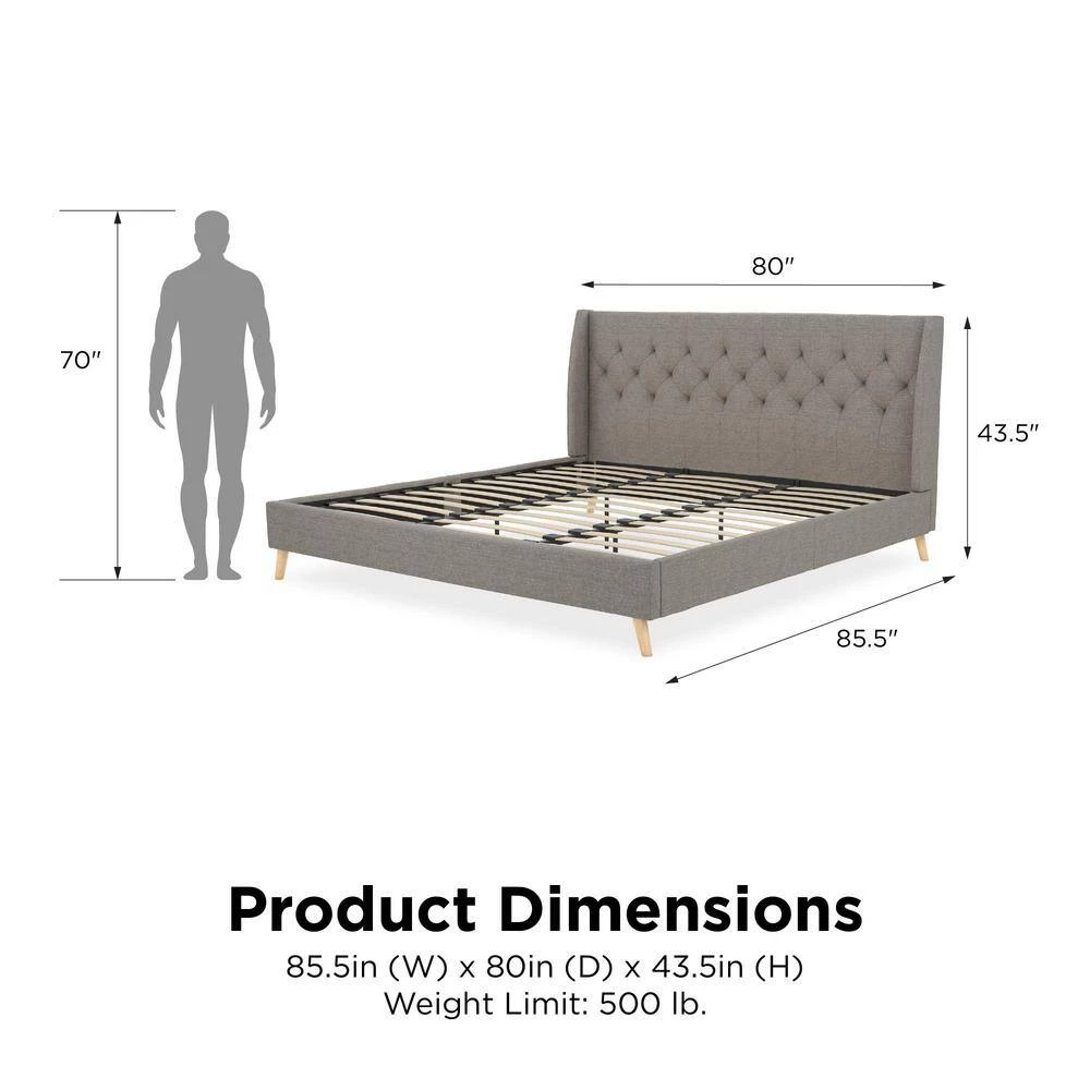 Get the royal treatment with the luxurious Her Majesty bed from Novogratz. The wingback headboard is covered in elegant tufted linen, which extends all the way around the equally stunning bed base. Thanks to the unique bentwood slat system, you’ll enjoy superior back support with excellent pressure distribution. As well, the slats allow air to pass freely beneath your bed, keeping you cool and ensuring your mattress maintains its freshness and lasts for years to come. The four wooden legs are slanted for maximum support, with an extra two metal legs and center rail providing additional structure and comfort. No need for a box spring or foundation either-just add a coil or memory-foam bed mattress and luxury bedding, then settle down for a great night’s sleep. The classic design with regal touches makes this bed frame the perfect addition to any bedroom or an ideal choice for a guest bed.