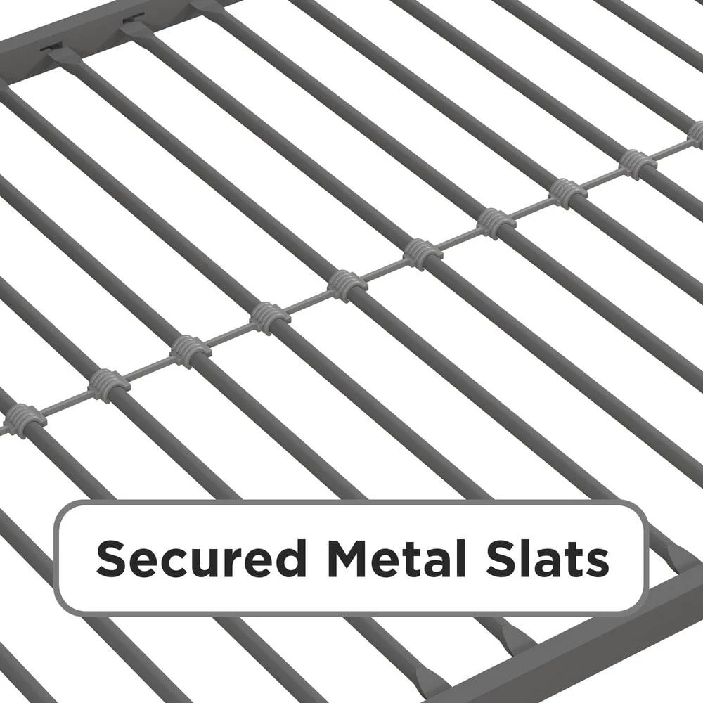 - Sturdy metal frame construction that includes metal slats and side rails for guaranteed stability and durability.