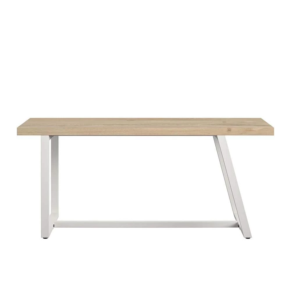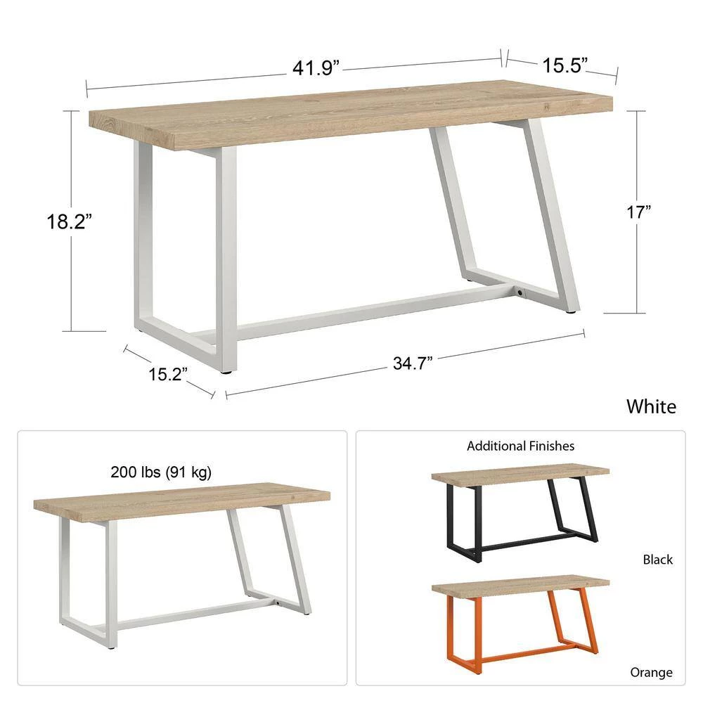 Show off your style right as you walk through the door with the Novogratz Palomino Asymmetrical Bench. The unique asymmetrical metal base features a white finish that adds a modern feel and pairs with the neutral light brown woodgrain finish on the laminated particleboard and hollow core bench seat. The bench can support up to 200 lbs. and gives you a comfortable spot to take off your shoes after a long day. The fun, retro design is perfect for both modern and traditional rooms. The Bench ships flat to your door and requires assembly upon opening. Two adults are recommended to assemble. Once assembled, the Bench measures to be 18.2 in. H x 41.9 in. W x 15.47 in. D.