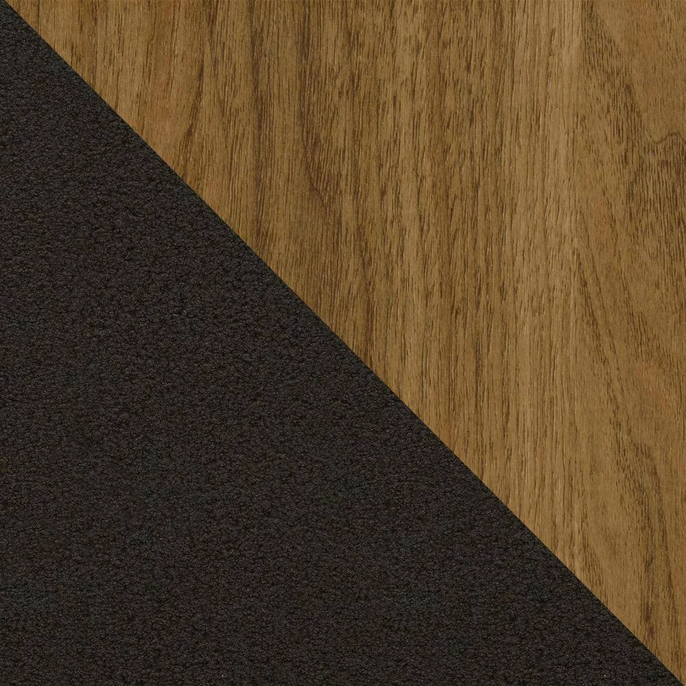 - Made of laminated particleboard with sturdy powder-coated metal legs, the warm walnut woodgrain finish on the tabletops pairs perfectly with the dark gray metal legs